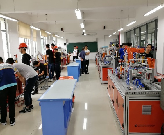10 | 智能制造技術實驗室 | 室承擔《機電一體化系統設計》、《機電系統創新實驗》、《PLC技術基礎》、《計算機控制技術》、《數控技術》等課程的實驗教學及實訓任務。 | 1、MES生產管理 2、PLC編程 3、CNC數控編程 4、工業機器人編程 5、 離線編程仿真 |