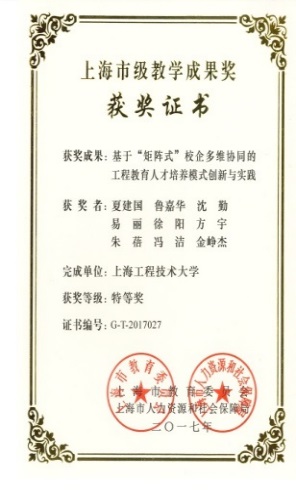 3 | 基于“矩陣式”校企多維協同的工程教育人才培養模式創新與實踐 | 上海市教學成果獎特等獎 | 方宇 | 2017 |