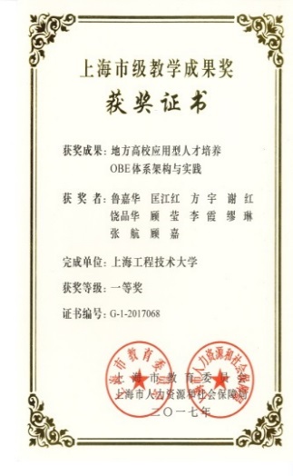 2 | 地方高校應用型人才培養OBE體系架構與實踐 | 上海市教學成果獎一等獎 | 方宇 | 2017 |
